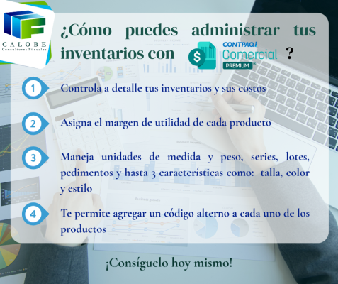 Para lograrlo, contar con una solución tecnológica como CONTPAQi Comercial Premium® facilita la gestión del inventario de manera integral, asegurando un control preciso y una operación más eficiente.