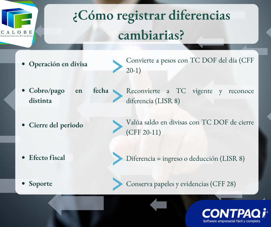 En términos fiscales, la Ley del Impuesto sobre la Renta (LISR) establece que las diferencias cambiarias forman parte de los ingresos acumulables o de las deducciones autorizadas, según corresponda, cuando provienen de créditos o deudas en moneda extranjera.