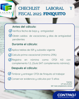 En 2025, el cálculo del finiquito en México sigue basándose en la Ley Federal del Trabajo y disposiciones fiscales emitidas por el SAT. Los puntos clave a considerar incluyen: