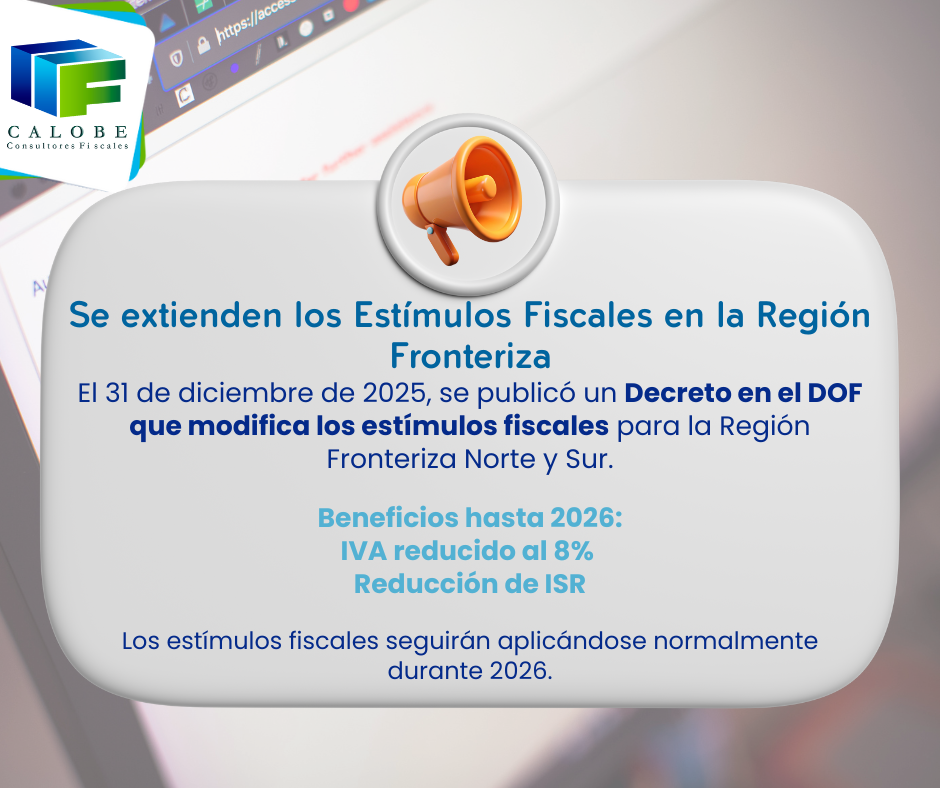 El 31 de diciembre del 2025 se publicó en la edición vespertina del Diario Oficial de la Federación (DOF) el DECRETO por el que se modifican los diversos de estímulos fiscales para la región fronteriza norte y el DECRETO de estímulos fiscales para la región fronteriza sur.