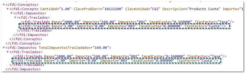 Factura con «IEPS Cuota 0»