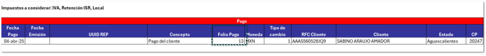 Folio del REP (dentro de la sección Pago).