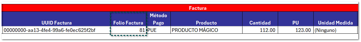 Folio de la factura (dentro de la sección Factura).